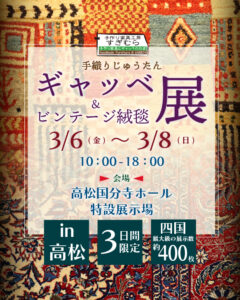 手織りじゅうたんギャッベ&ビンテージ絨毯展in徳島 2/27(金)から開催です!