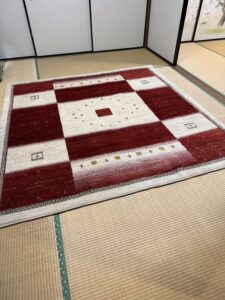 茜色が美しく映える2×2mサイズのギャッベ(高知県高知市Y様)New!!