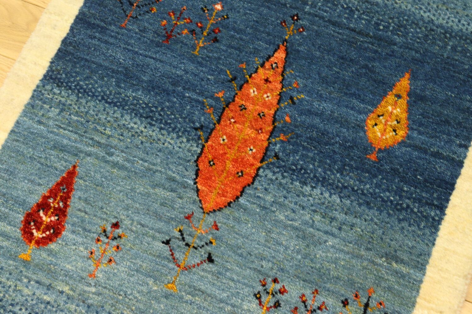 リビングやベッドサイド、玄関先など、限られた空間にも取り入れやすいサイズ感でありながら、一枚で空間の印象を整える存在感を持つギャッベです。自然素材と手仕事の温もりを、日々の暮らしの中でゆっくりと感じていただけます。