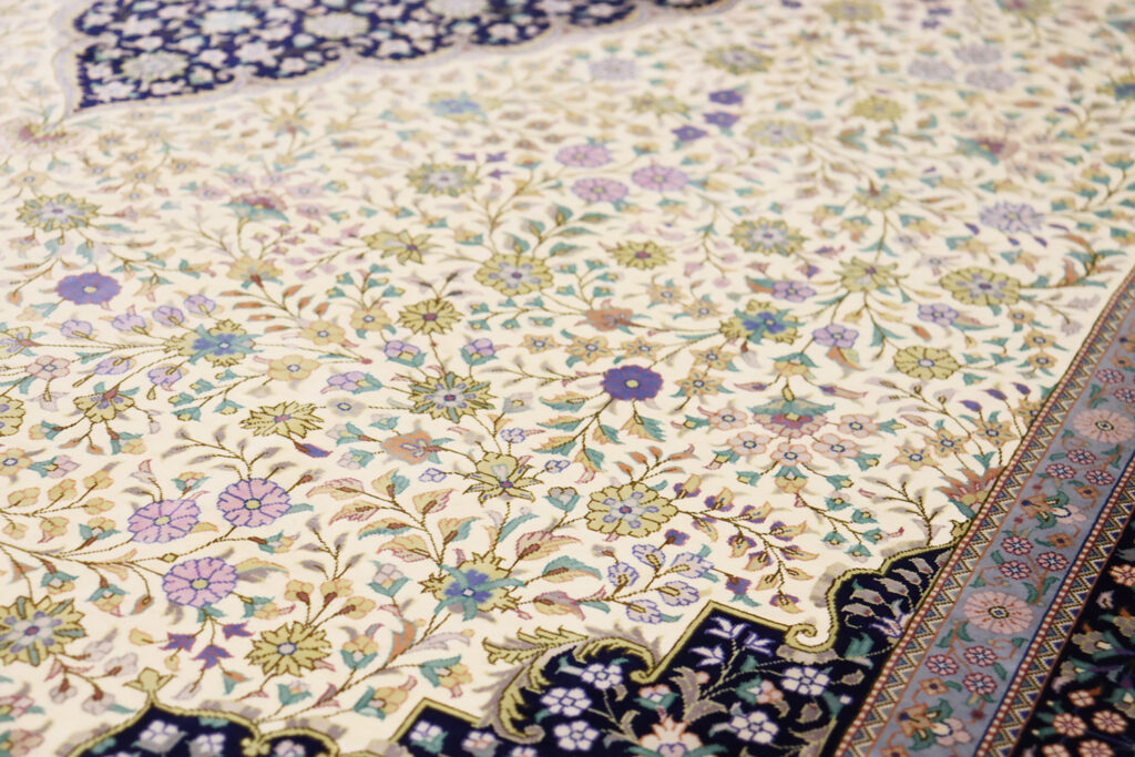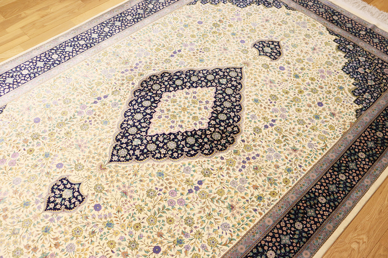 上質なシルクの輝きと、気品あるデザインを兼ね備えたクム産シルクペルシャ絨毯。