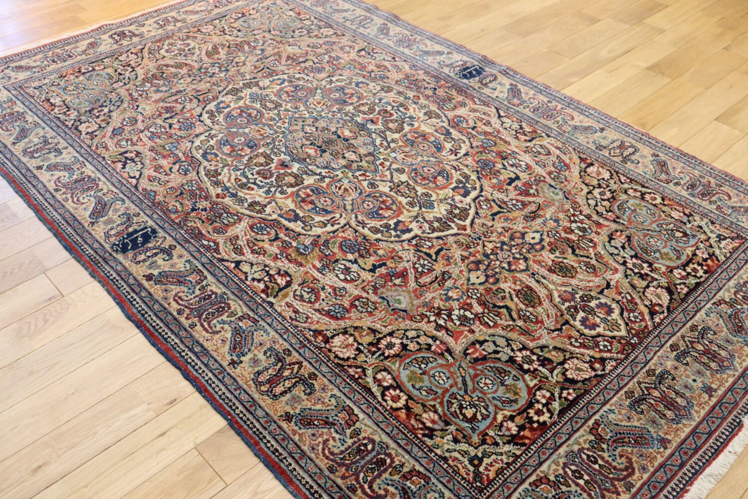 イラン北東部の古都 マシュハド で織られた、約100年前のアンティーク・ペルシャ絨毯です。