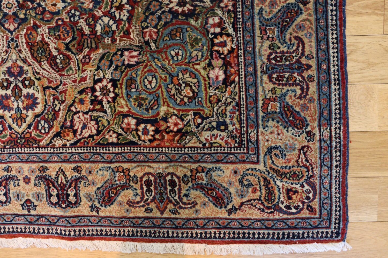 長い年月を経てなお、ウールの艶やかさと織りの美しさがしっかりと残っており、アンティークとしては非常に良好なコンディションを保っています。