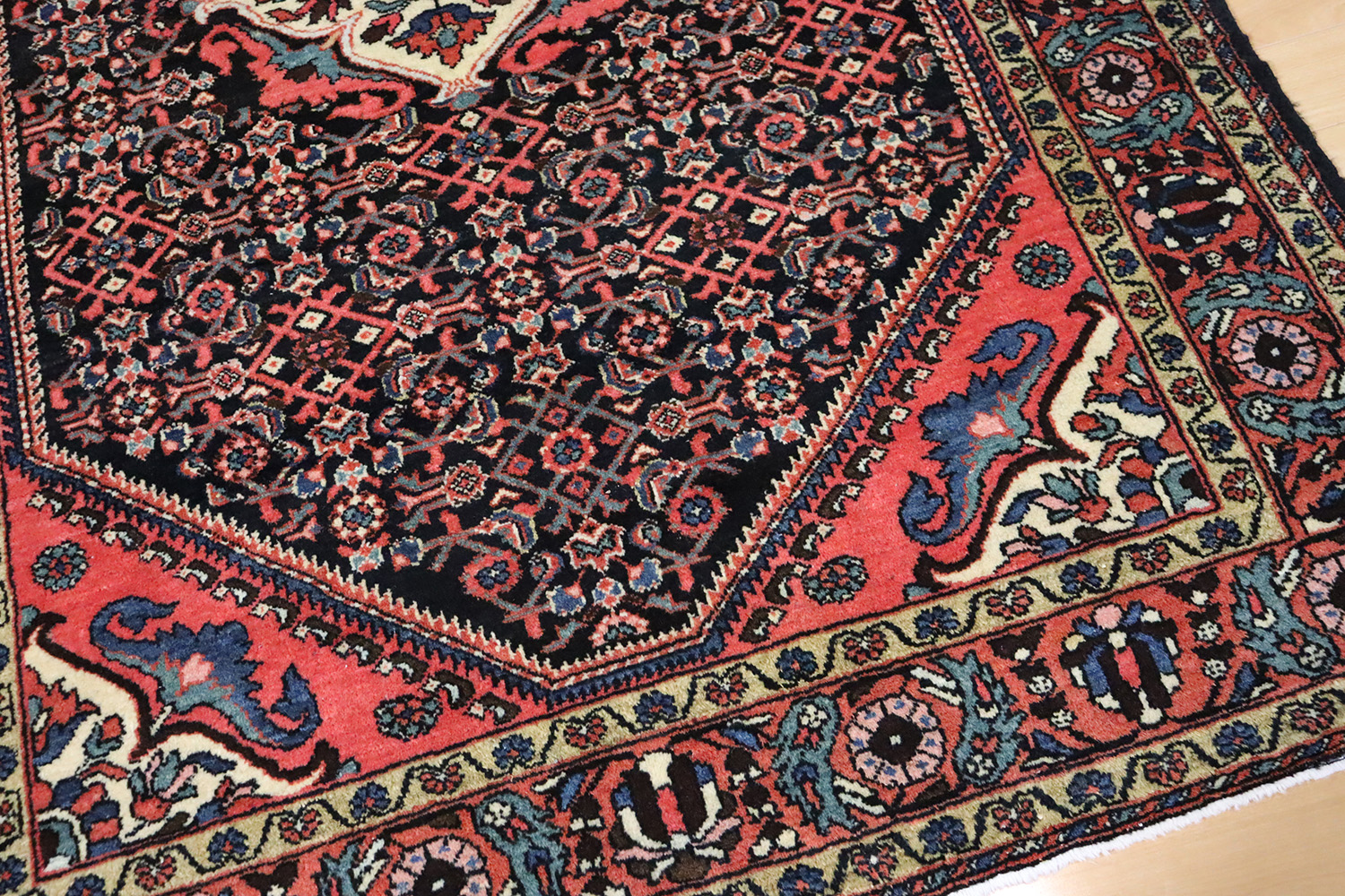 今回入荷したこちらの一枚もハマダン絨毯らしいオーソドックスなメダリオンデザインでありながら、部族文化が感じられる雰囲気を醸し出しています。