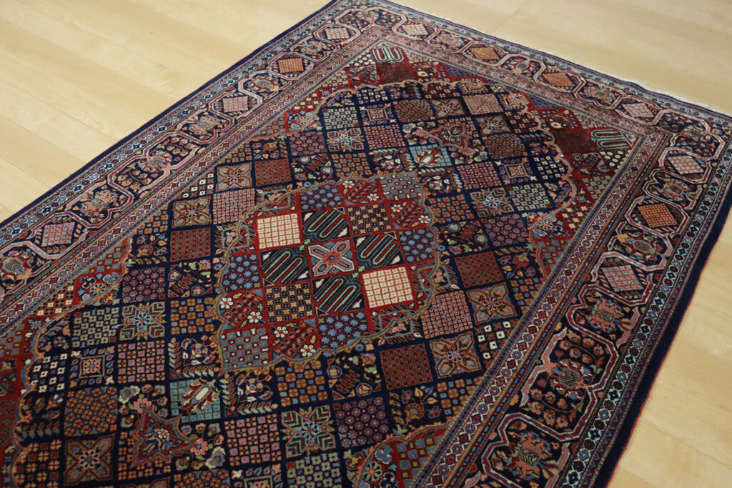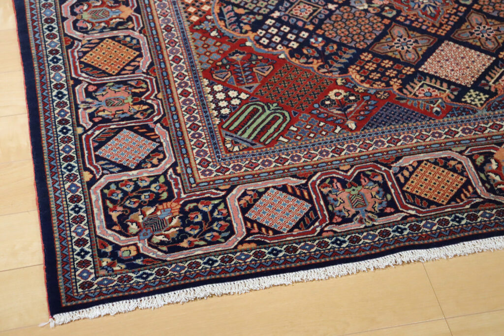 また、ジョーシャガン絨毯は緻密な織りと堅牢な仕上がりを特徴としています。羊毛の質感はしなやかでありながら耐久性に優れ、現在でも日常使いに十分耐えうる強さを備えています。絨毯としての実用性と芸術品としての価値、その両方を兼ね備えている点がアンティークジョーシャガンの大きな魅力です。