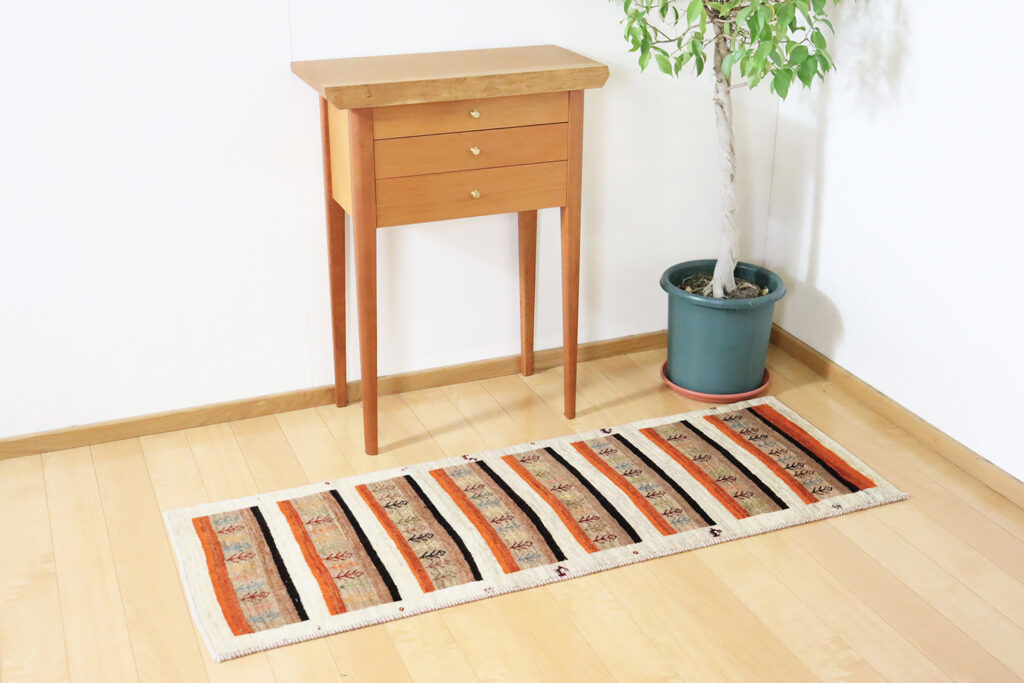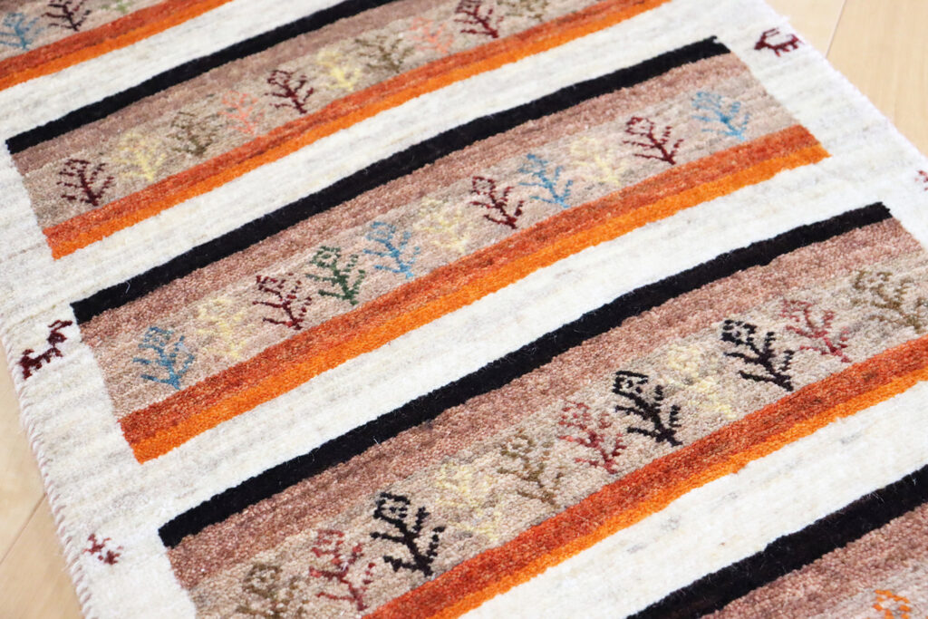 カシュクリランクのギャッベは、遊牧民の中でも特に織りが緻密で毛足はしなやかで密度が高く、踏み心地はしっとりと柔らか。小さなサイズながらもその上質さは一目で感じ取れます。