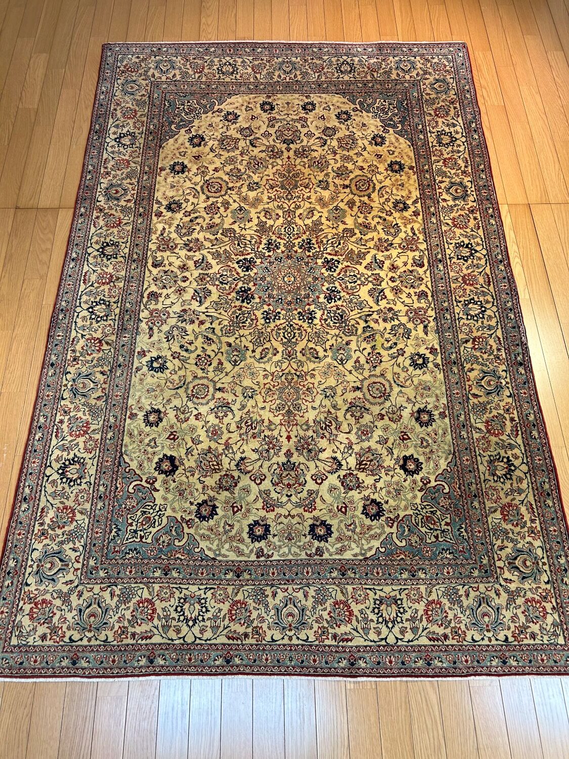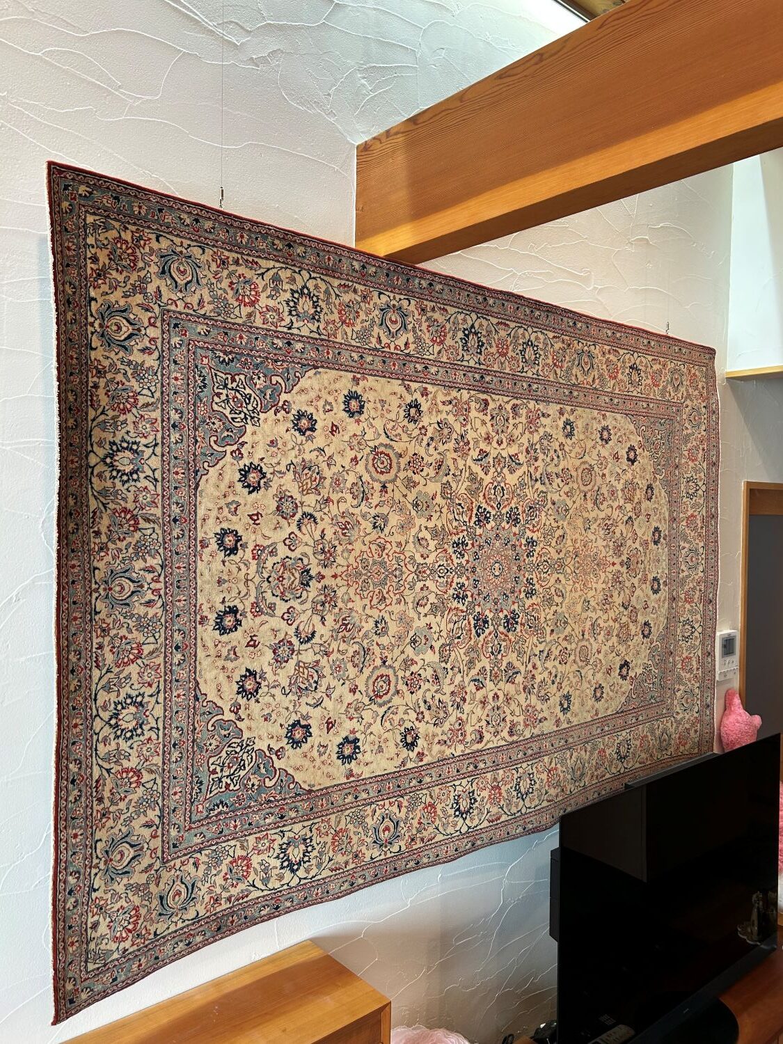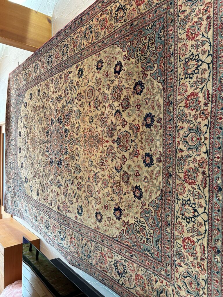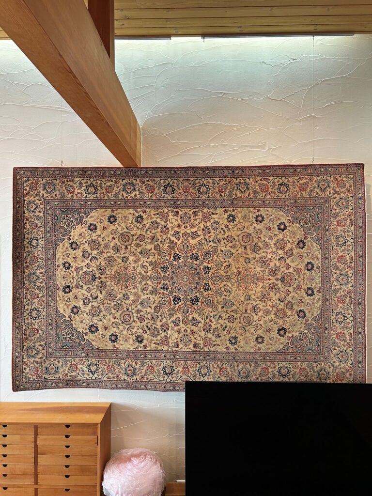 そのトゥデシクのアンティーク絨毯をウォールアートとして掛けて頂きました。