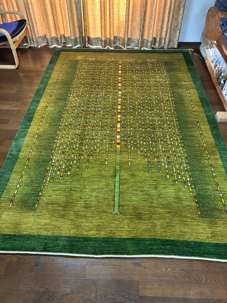 先日、カシュクリランクの約3m×2mの大きなギャッベをお客様のご自宅へ納品してきました。